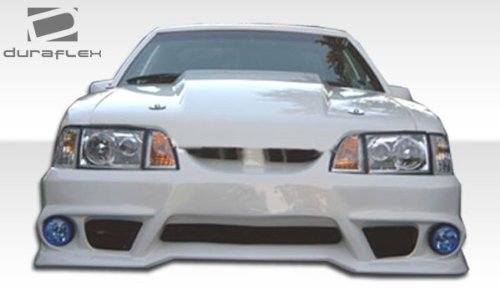 Duraflex FRP Ford Mustang GTX Front Bumper 1pc > 1987-1993?Extreme Dimensions has revolutionized fiberglass marketing with their premium Duraflex aerodynamics. Duraflex is not flexible like urethane or plastic bumpers. Duraflex fiberglass combines fiberglass, plastic, and flex resins to obtain its unique features. Because of these features, Duraflex technology obtains a durability rate than the average fiberglass product, resulting in reduced shipping damages. Duraflex products come complete with a black primer finish, high quality mesh grille if applicable, generic hardware kit, and a basic guide to help you install the product. This revolutionary product allows the consumer to receive a premium fiberglass product at an affordable price. All fiberglass parts require modification, shaving, sanding, drilling, filling in order to ensure proper fitment.FeaturesHigh quality 6 oz. fiberglassProfessional prep work requiredCutting, Shaving, Filling required on FRP partsBlack primer finishHigh quality mesh grilleInstallation GuideGeneric Hardware Kit (most parts)Reduced damage rate up to 75%DISCLAIMER: Due to differences in products and design, durability test results may vary.